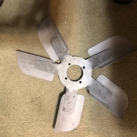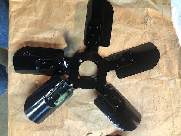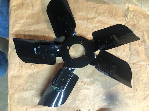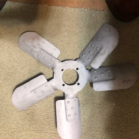 Here is a original GM fan number 912239 dated G5 "CS" My research shows it could be used on early Corvettes, Camaros, Chevelle's. This is also listed for 68/74 Corvettes. Been in storage for 40 years in excellent shape. Just bead blasted it to find the stamped numbers on the blades. Do your own research to determine if it fits your application.