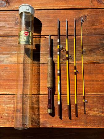 I’m selling a used Berkeley buccaneer BT 5C – 7 fishing rod in the original tube. I don’t know much about these but all five pieces seem to be in real nice condition and fit together nice. The tube is missing one end. Let me know if you have any questions.