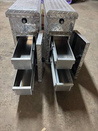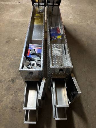 Pair of brand new diamond plate better built full size truck wheel well boxes. Top opening and pull out drawers. Originally priced at $950. Will sell for $400 Includes all mounting hardware and...