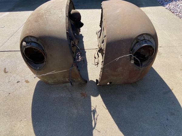 Here are a pair of Ford front fenders in pretty good condition..still has the inter fender and horn(dont know if it works)