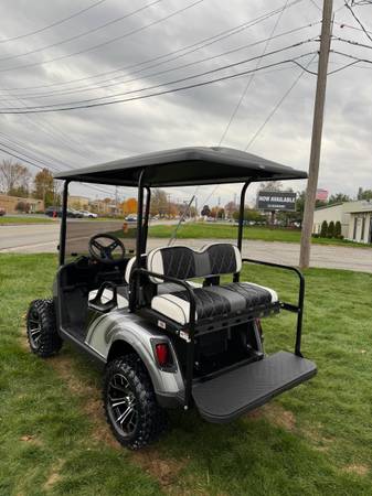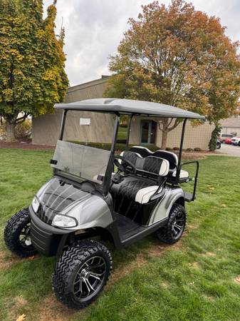 LITHIUM POWERED! —FRESH CUSTOM BUILD! Take a look at this fully redone Ezgo RXV Lithium Golf Cart. Be the talk of the campground with this sweet ride. Very sharp color combo. Body off frame...