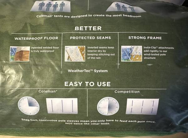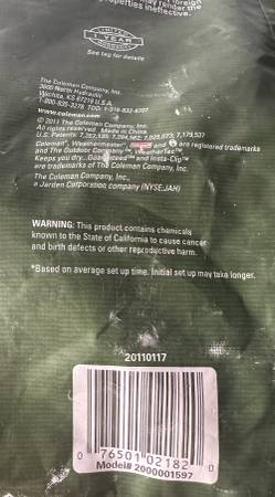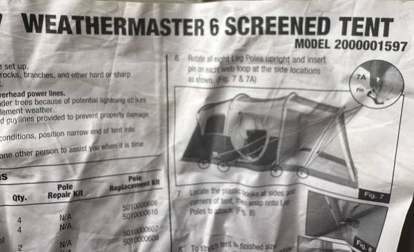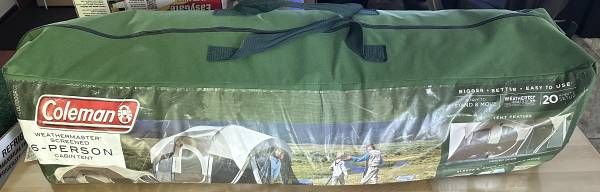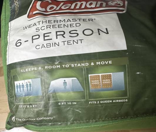Coleman Weathermaster Screened 6 Person Cabin Tent #2000001597 If you do an internet search for the title of this listing, it will bring up all of the specs of this tent. It was used a few times and...