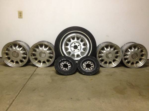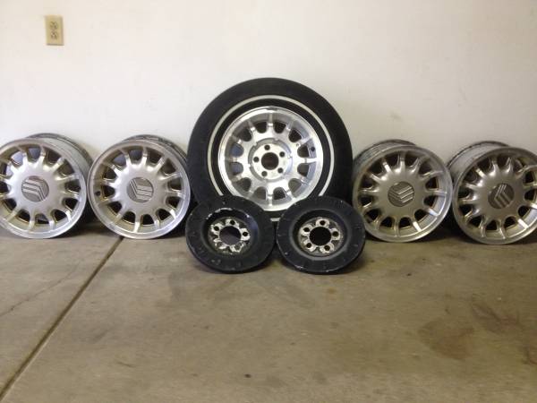 I have 5 wheels from a 1995 Mercury Grand Marquis. One of the wheels has a tire on it that is good to use as a spare tire. The wheels are in good shape. $100.00 each. I prefer to sell them as a set.
